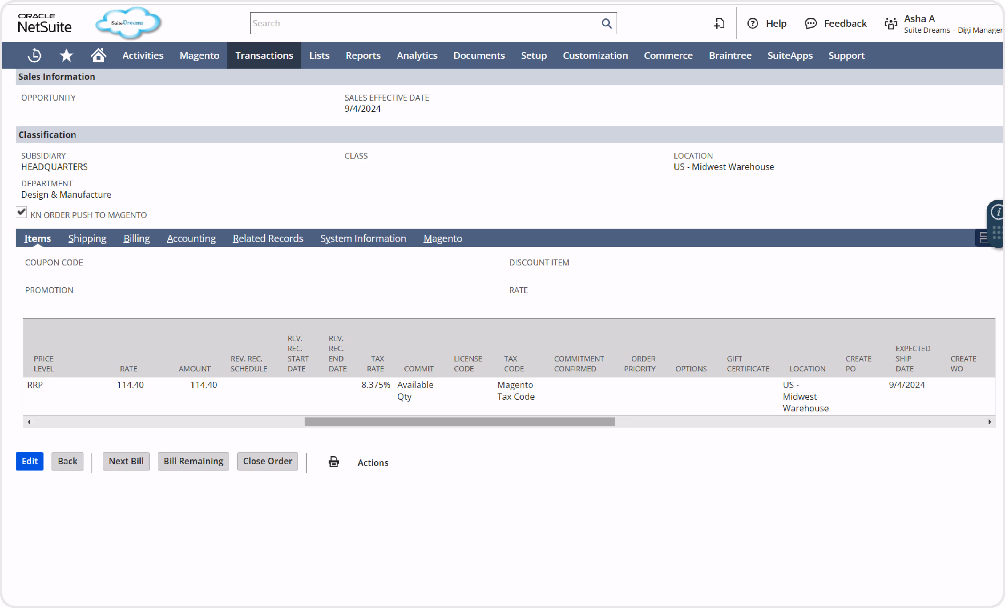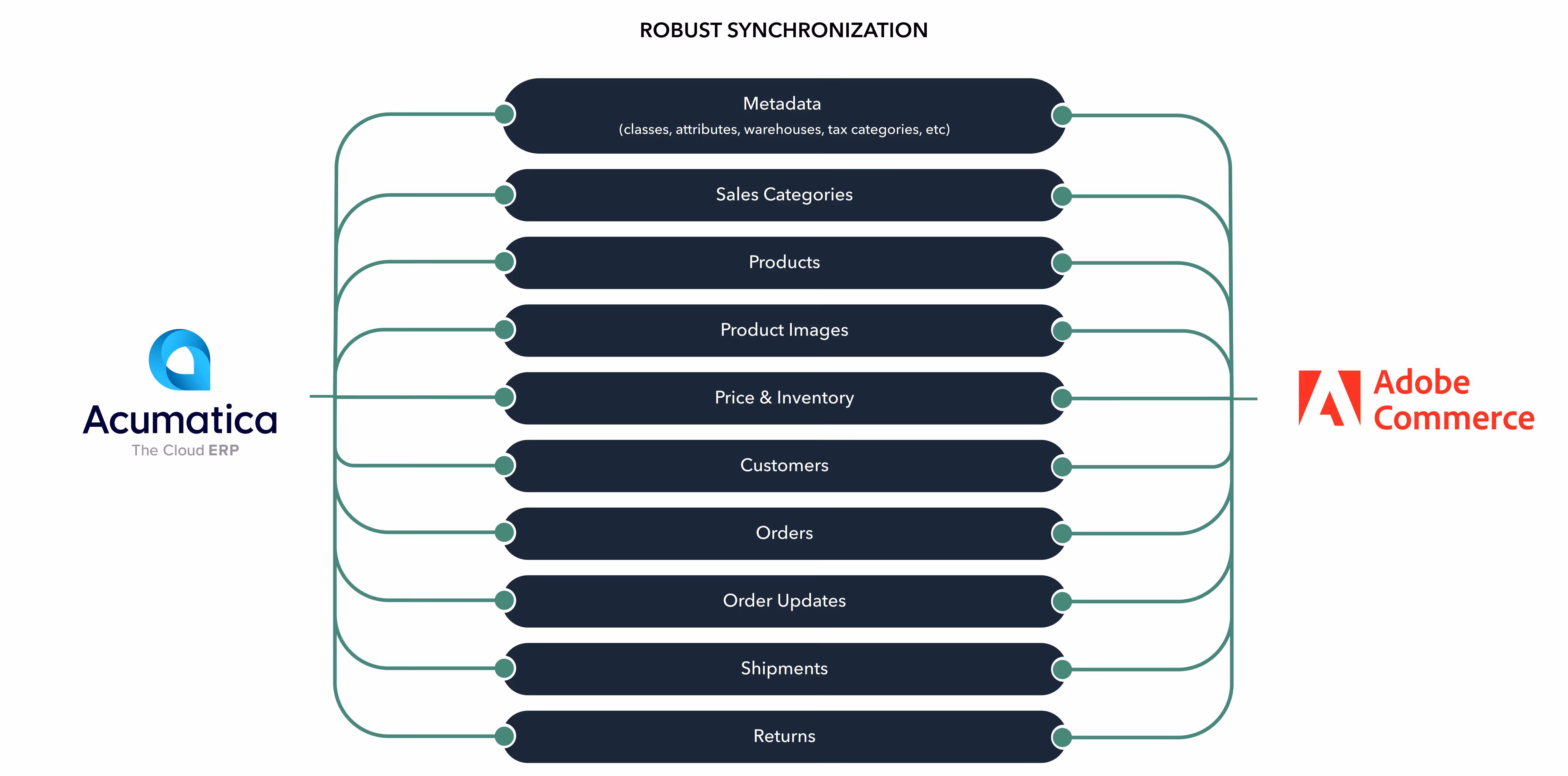 Make NetSuite ERP the main source of accurate product information by syncing essential data, including sales categories, product attributes, images, pricing, and inventory levels, from NetSuite to Adobe/Magento. This ensures that NetSuite remains an authoritative and reliable source for all product-related details.