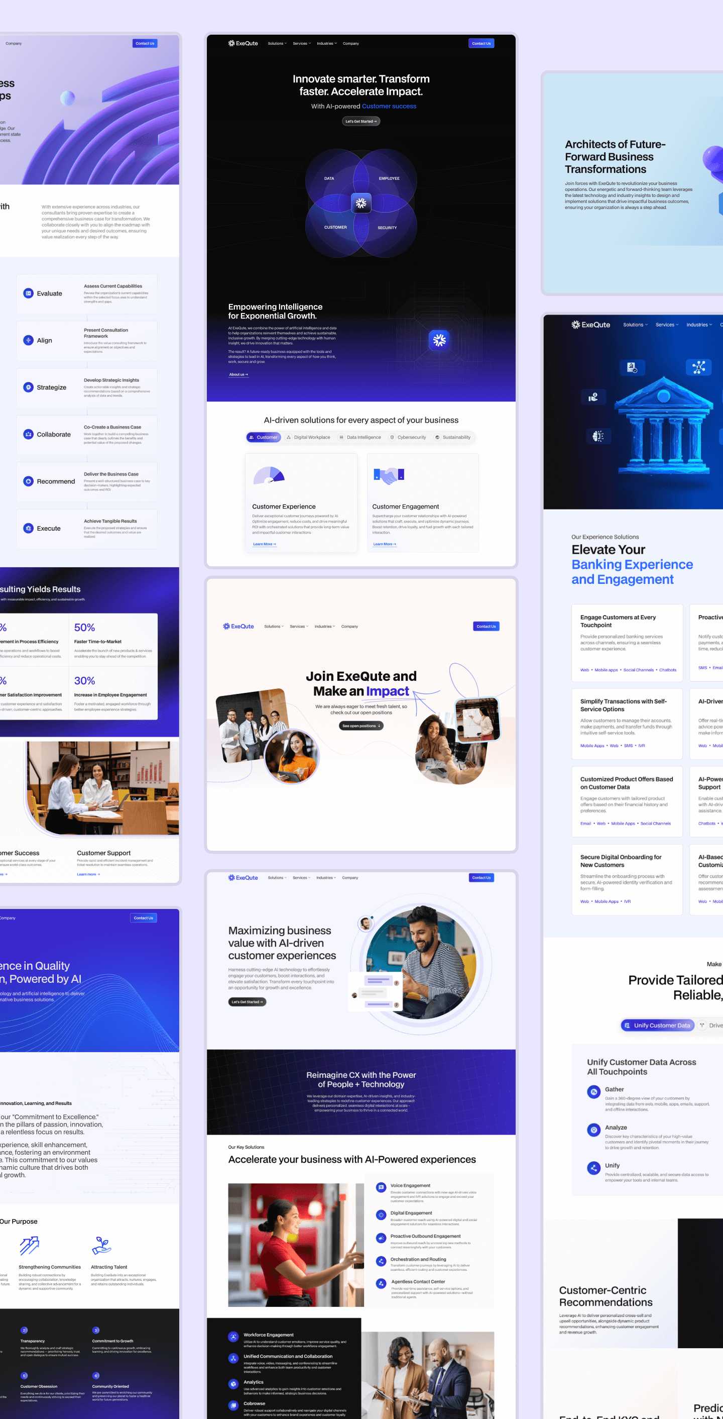 From the logo and typography to hero sections, every detail had to reflect Exequte’s vision with intentionality and depth. The goal was to build a seamless, strategic, and visually compelling experience culminating in a refined Webflow-powered website that stood apart in the industry.