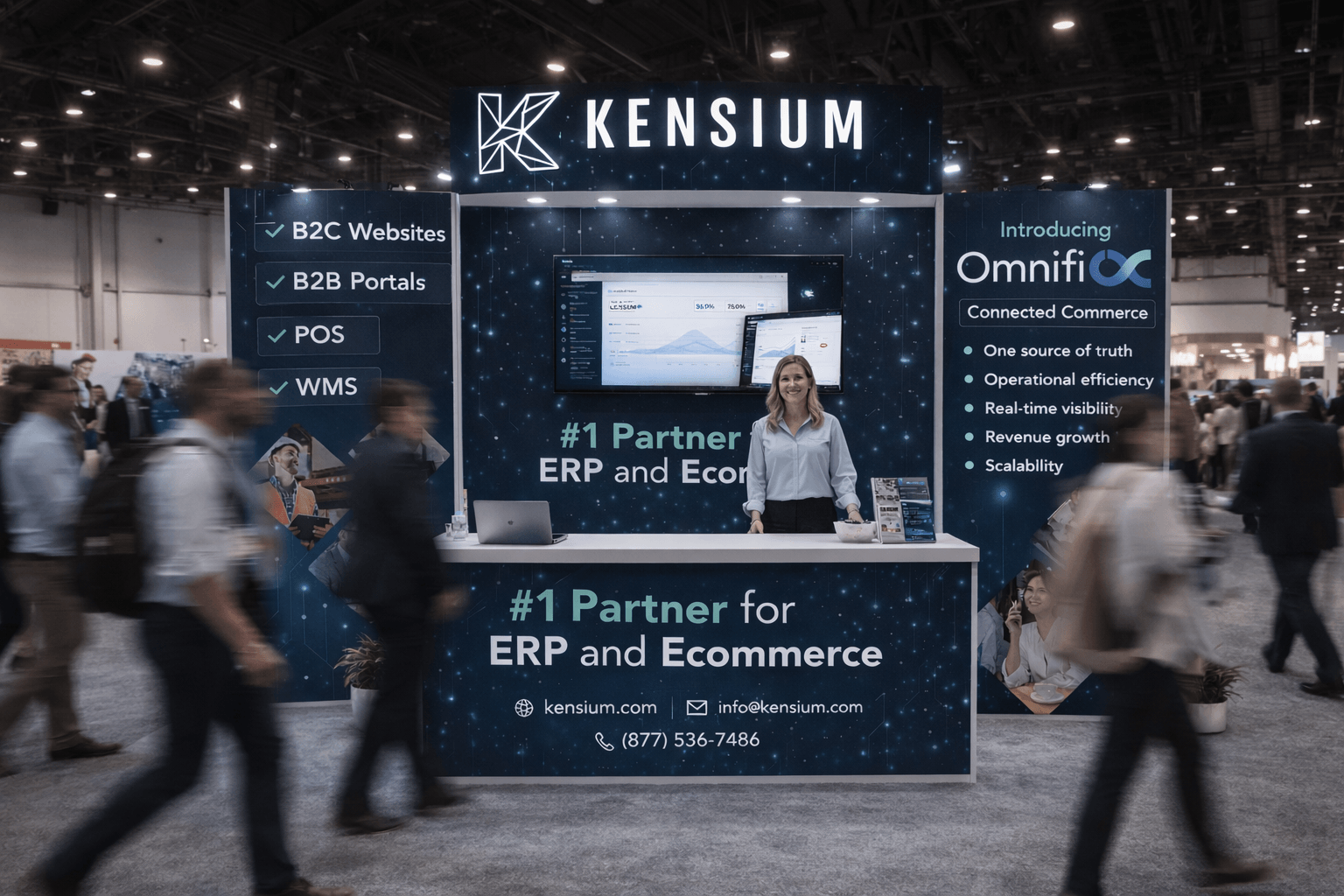 Kensium extends Adobe Commerce with ERP-connected commerce, POS, WMS, B2B portals, and B2C websites — built to keep product, pricing, inventory, and order data accurate and synchronized.